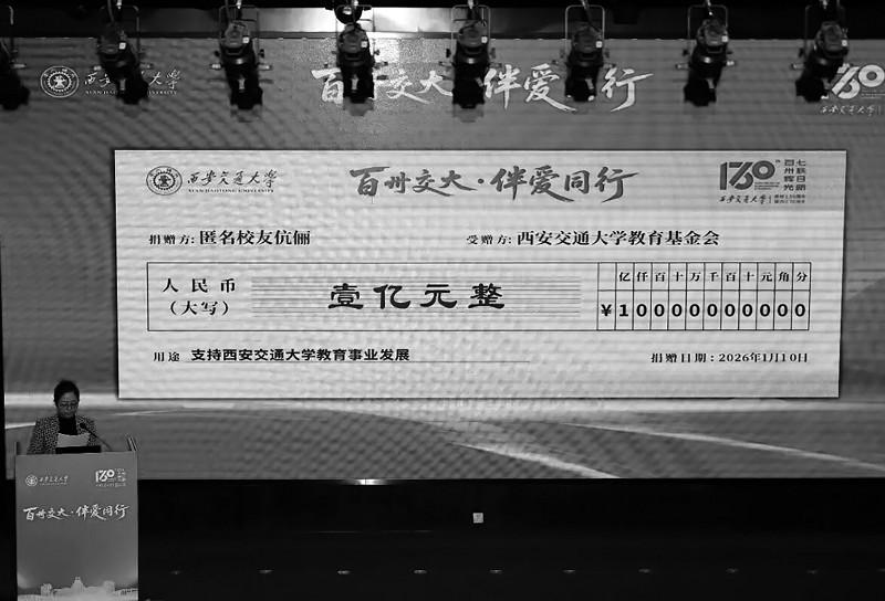 西安交通大学校友伉俪匿名捐赠1亿元助力母校发展