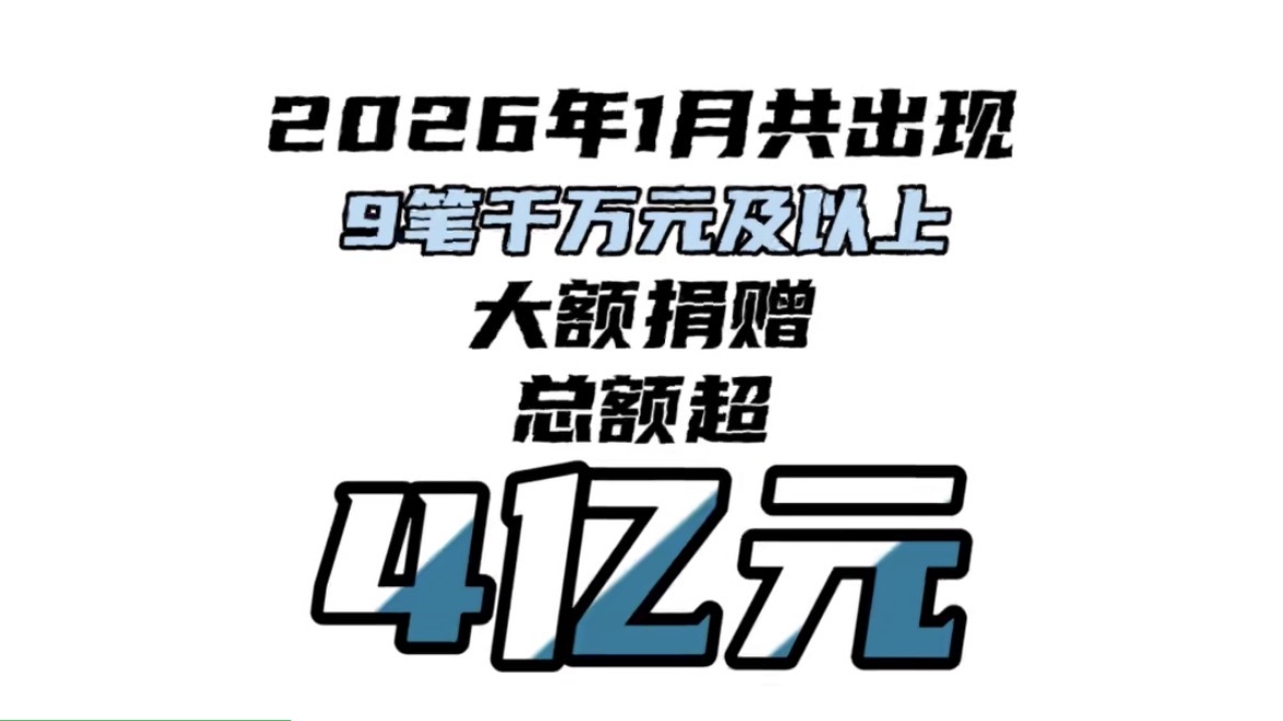 2026年1月大额捐赠一览:千万元及以上捐赠超4亿元,捐赠总额大幅下降
