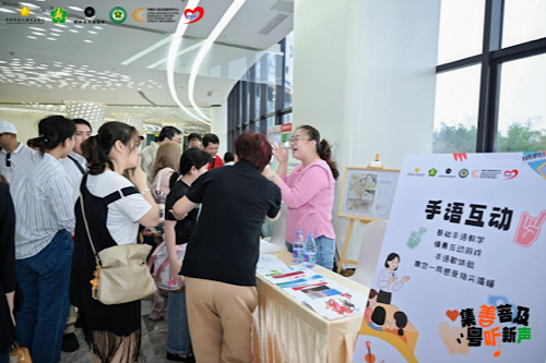 启动仪式前,赵素京一行参观了项目的科普打卡、手语互动、科技助残体验、听力健康义诊及爱心义卖等活动。中国残疾人福利基金会合作项目部、广东省残联有关部门、广东省哥弟菩及公益基金会、广东省残疾人公益基金会,广东省聋协、有关市区残联、康复机构负责同志以及听障学生、爱心家庭等300余人参加了现场相关活动。