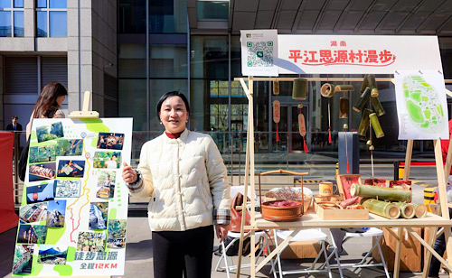 刘小妹向路人推介家乡的民宿与旅游资源
