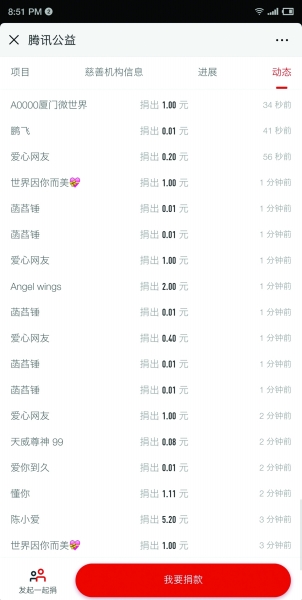 今年活动期间,《公益时报》记者随机抽取了部分热门项目的捐赠流水,未大面积发现有“刷单”现象(注:腾讯公益产品运营团队认为,一个普通用户60秒可完成4次捐赠),但也发现某些热门项目下有大量0.01元的捐赠,时间间隔数秒,多数来自匿名网友,也发现有少数同一ID一分钟内捐赠0.01元达到5次的情况。
