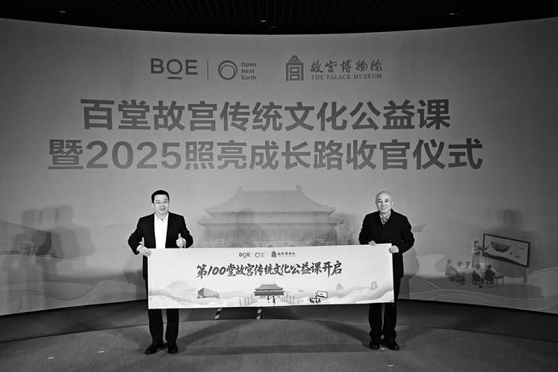近日,BOE(京东方)“百堂故宫传统文化公益课”暨2025照亮成长路收官仪式在故宫博物院举行。故宫博物院是BOE(京东方)“照亮成长路”公益项目的重要合作伙伴,双方自2023年携手启动“百堂故宫传统文化公益课”项目,依托BOE(京东方)智慧教育解决方案与数字技术弘扬中华优秀传统文化,不仅为偏远地区教育高质量发展注入科技活力,还凭借数字化形式推动文化传承,展现传统文化历久弥新的独特魅力。 该项目于云南省保山市启动,历时两年已走进包括陕西西乡、山西娄烦、四川理塘、青海玉树在内的多地近40所学校,线上线下累计惠及学生超过两万名,持续推动“科技+教育+文化”的可持续发展,切实帮助偏远地区学生获得近距离感受中华传统文化魅力的教育机会。 活动现场,故宫博物院院长王旭东,故宫博物院副院长朱鸿文,中国乡村发展基金会副秘书长丁亚冬,京东方科技集团CEO冯强,京东方科技集团副总裁、首席人事官李洋,京东方科技集团副总裁、首席品牌官司达等嘉宾,以及曾参与项目课程的五所学校20名师生代表齐聚一堂,共同见证这一重要时刻,并展望科技赋能文化传承与青少年教育的未来新篇。 朱鸿文在致辞中表示,“故宫博物院和京东方科技集团都是深耕各自领域的实践者,我们拥有推动文化教育发展的多元化优势——企业有技术赋能的能力,文化单位有内容资源的厚度。我们通过‘文化+科技’的双重赋能,带领边远地区的孩子们在智慧课堂上触摸历史脉搏,跨越时间和空间的限制,近距离感受故宫承载的中华优秀传统文化的独特魅力。” 李洋在致辞中表示,“京东方‘照亮成长路’项目已走过十年,它已超越单一公益项目,成长为一个开放、多元、可持续的公益平台。百堂课的收官不是终点,而是一个崭新的起点。我们期待更多优秀的伙伴加入‘照亮成长路’项目,共同以科技与文化之光,让优质的教育资源突破时空限制,照亮更多孩子的成长之路。” 丁亚冬在致辞中表示,“京东方作为全球创新型物联网公司和全球显示产品龙头企业,积极履行社会责任,不仅提供公益资金捐赠,还以其全球领先的显示技术和物联网解决方案,为‘百堂故宫传统文化公益课’提供了高质量的传输与呈现保障。” 仪式现场,曾参与项目课程的五所学校师生代表带着亲手制作的纪念品依次登台发言,表达对BOE(京东方)及故宫博物院的谢意。在仪式结尾,王旭东与冯强共同上台展开卷轴,标志着第一百堂故宫传统文化公益课开启,也为故宫博物院建院100周年这一重要历史时刻增添特殊的纪念意义。仪式结束后,故宫工作人员带领学生走进故宫,在充满历史底蕴的宫殿中讲述建筑与文物背后的文化故事,为孩子们带来了意义非凡的第一百堂故宫文化课,沉浸式加深偏远地区孩童对中华优秀传统文化的认识。 除了实地游览故宫,BOE(京东方)还安排了丰富的研学活动,带领师生们在王府井数字艺术馆与京东方历史展览馆开展研学。在数字艺术馆,BOE(京东方)通过高清显示与动态影像技术打造出沉浸式文化场景,让文物“活”起来;在京东方历史展览馆,孩子们则透过屏幕技术的演进,直观感受到科技发展的创新力量。在领略科技赋能艺术魅力之余,BOE(京东方)还带领师生们走进北京的地标性景区,亲身感受天安门广场的庄严、颐和园的秀美、景山公园的辽阔。这场研学之旅,让历史与文明不再遥远,让文化变得可触可感,助力孩子们收获更为鲜活而深刻的文化体验。 依托“照亮成长路”项目,BOE(京东方)搭建起跨越空间和距离的数字化平台,开展10余年来已在10个省市建成156间智慧教室,累计受益师生超7万人,不仅让偏远地区的孩子们沉浸式感受到文化和科技的力量,也通过丰富的研学活动,让孩子们能够跨越千里之遥来到祖国的心脏研学,在心中埋下科技赋能文化的种子。这不仅标志着“照亮成长路”实现了从“硬件支持”到“内容赋能”的深刻跨越,更是BOE(京东方)公益维度的重要升级。而“百堂故宫传统文化公益课”的落地,也象征着BOE(京东方)“照亮成长路”项目全新的开始。 BOE(京东方)持续以技术突破赋能文化业态革新,让责任之光照进文化与科技的融合之路。近年来,BOE(京东方)与包括故宫博物院在内的多家文化机构展开合作,今年更是助力故宫博物院百年大展,联合打造“遇见你的故宫色”裸眼3D数字展项、乾隆花园数字展厅等,让科技成为传递美、连接文化的桥梁。 面向未来,BOE(京东方)将继续秉持“OpenNextEarth”可持续发展理念,发挥自身在屏幕显示、物联网等领域的领先科技实力,携手故宫博物院在内的众多合作伙伴推动中华优秀传统文化的创新性传承,以科技和文化双重赋能教育,让融合科技温度、文化深度与公益广度的教育生态照亮更多孩子的成长之路。 (武胜男) |