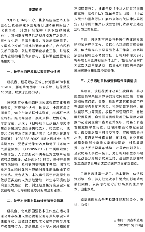 官方通报“蔡国强烟花秀”事件调查核查情况(G)