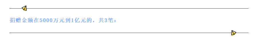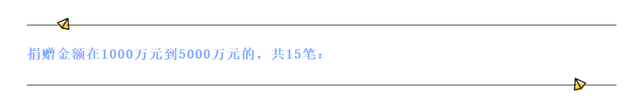 另外,还有18笔1000万元及以上大额捐赠,涉及资金共计4.35亿元。