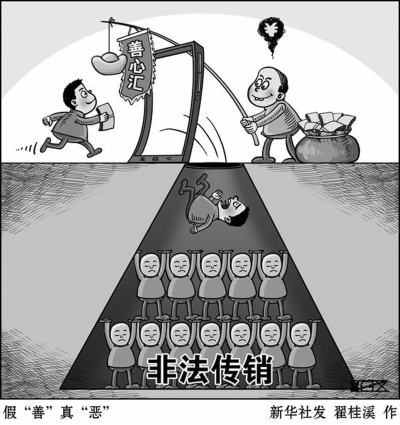 近日,公安部组织侦办了“善心汇”涉嫌特大传销案,依法对深圳市善心汇文化传播有限公司法人代表张天明等人涉嫌组织、领导传销活动等犯罪问题进行查处。新华社记者日前通过深入采访,揭露了张天明等人打着“善”的旗号违法行“恶”的本质。