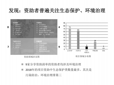 《报告》对2018年我国环保公益领域主要资助者的资助信息和资助成果进行了集中展示,通过信息汇总、案例分析、资助者访谈等方式,透视环保公益现象,剖析环保公益生态,研判未来发展趋势。