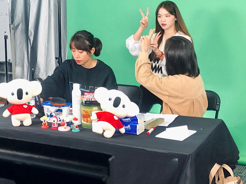 少嫚和范范两位听障主播,正在教考拉播播双十二手语。