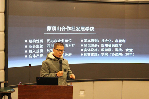 (四川省蒙顶山合作社发展培训学院执行院长王光远介绍学院情况)