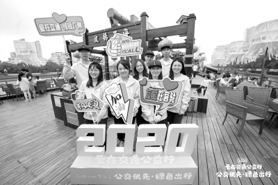 500位来自社会各界的市民乘坐公共交通工具,打卡北京路观光巴士站、珠江新城公交总站、广州地铁博物馆、天字码头南海神号主题游船等代表广州交通特色的项目,用行动支持绿色出行,打卡筹善款。