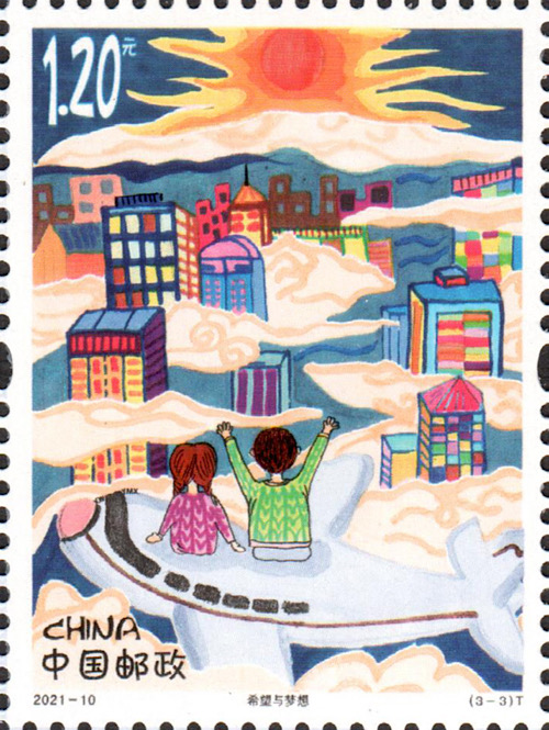 为庆祝中国共产党成立100周年,中华全国集邮联合会、中国邮政集团有限公司、中国宋庆龄基金会联合举办了“永远跟党走逐梦新时代”全国少年儿童邮票创作设计作品征集活动。活动得到了全国各地少年儿童的积极响应,共征集作品18000余幅,涵盖31个省(自治区、直辖市)的261个地市。这些作品充分展现爱党、爱国、民族大团结等时代主旋律以及各族人民的美好生活。经专家评审,共评出一等奖20名、二等奖46名、三等奖100名。其中3幅一等奖作品登上《儿童画作品选》特种邮票,于6月1日发行700万套。