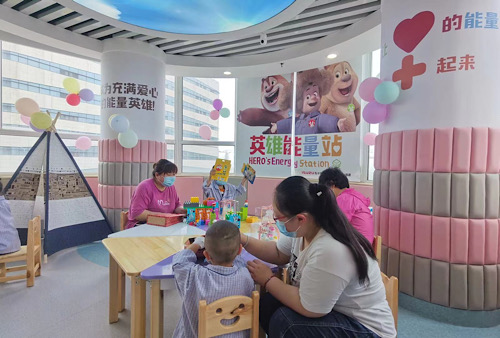 6岁的小圆(化名)因神经源性膀胱需要终身导尿,每个月都需要来医院更换尿管,病痛和常年挂着尿袋的生活让他变得十分内向。在医务社工的鼓励和现场气氛的带动下,小圆终于绽开笑颜,甜甜地吃起蛋糕,开开心心地参与游戏。山东大学第二医院儿外科主任陈维秀介绍,小圆的父母都在外地打工,只有70岁的奶奶照顾他。即使每次来医院都有医生和护士给他们最大的照顾,但随着奶奶年纪增大、身体每况愈下,小圆的身体恢复和心理康复始终都是一个难题。陈维秀说:“像小圆这样的儿童有很多。希望能通过‘英雄能量站’为患病儿童和他们的家庭解决实际问题,凝聚关注患病儿童身心健康的社会能量。”