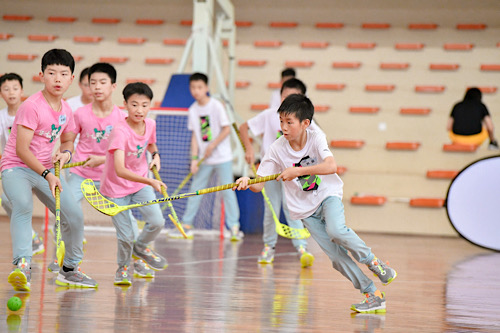 由于条件和环境限制,冰球和冰壶训练和比赛均为陆上,也就是旱地冰球和冰壶,但这对南方孩子们来说,已足够新奇和好玩。运动营期间,当地酷暑天气并没有阻挡孩子们的热情,身着安踏捐赠的统一运动服装,冰球训练和比赛时,满场跑的他们都是大汗淋漓。