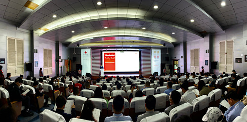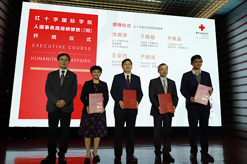 红十字国际学院专家咨询委员会成员,中国红十字会总会、中国红十字基金会、江苏省和苏州市红十字会以及苏州大学和红十字国际学院有关部门的负责人,第二期人道事务高级研修班学员参加了开班仪式。(摄影:付春来等)
