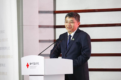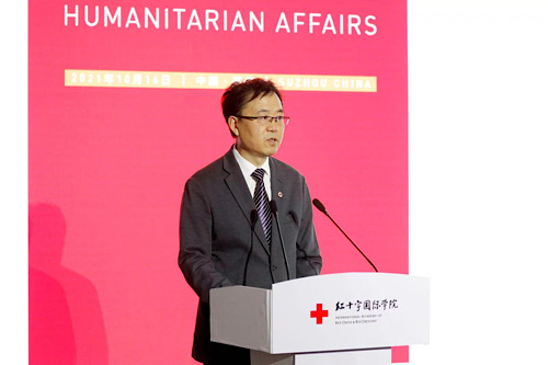 江涌在致辞中指出,红十字国际学院成立运行两年多来,在各方关心和支持下,克服新冠疫情带来的不利影响,在制度建设、人才培养、教育培训和国际合作等方面取得了令人瞩目的成绩。在“十四五”开局起步之年,在党的十九届六中全会即将召开之际,第二期人道事务高级研修班的顺利开班对谋划推动中国特色红十字事业高质量发展具有重要意义,将为深入学习贯彻习近平总书记关于红十字事业的重要指示精神、推动红十字事业创新发展高质量发展凝聚合力、增添动力、注入活力。