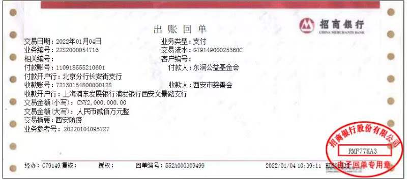 东润公益基金会捐款200万元驰援西安抗疫