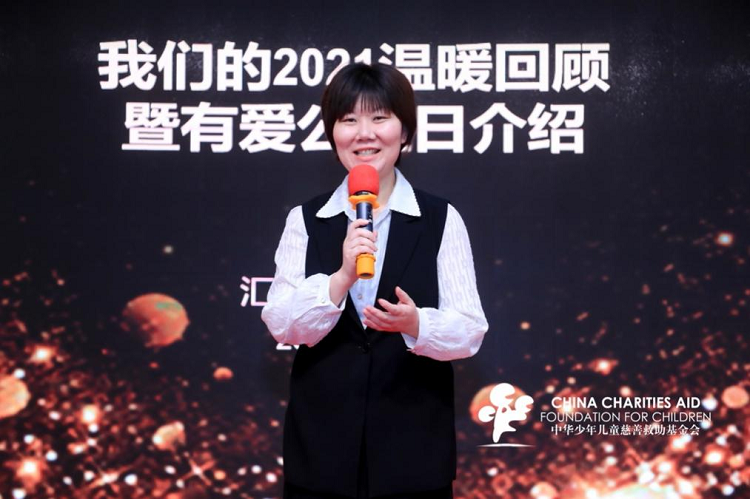 中华儿慈会秘书长姜莹介绍“有爱公益日”活动