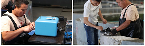 据长江所透露,科研人员对本次放流的666尾中华鲟采用了四种不同的标记方式,对于规格较小的鲟鱼,使用CWT金属线码标记,通过特定的仪器把金属线码打入鱼的体内;50cm以上的鲟鱼可以使用锚标标记或者PIT标记。锚标标记是一种体外标记,上面记录了放流的单位、联系电话等,便于群众发现在野外受伤的鲟鱼时及时联系研究所;PIT标记可以编码一个数字序列,相当于是中华鲟的身份证,相较于锚标其优点是在鱼的体内,寿命可达30年;而对于规格在1米5以上的大鱼,则使用超声波标记,通过手术的手段植入到鱼的体内,通过沿江布置的固定站接收信号,实现追踪。