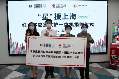 9月20日,“星援上海”红十字应急救护一体机捐赠仪式在上海徐家汇社区文化活动中心举行。北京星巴克公益基金会通过中国红十字基金会向上海市徐汇区捐赠10套应急救护一体机,投放至社区服务中心、文化服务中心等公共空间。同时,上海市徐汇区红十字会将为社区居民开展应急救护知识技能培训,让更多人增强急救意识和能力,提升突发情况下的自救互救能力。
