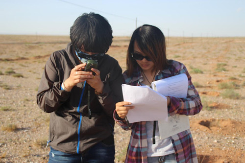 SEE基金会工作人员正在对牧民梭梭林进行验收