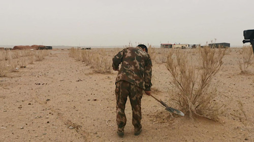 牧民魏军正在自家梭梭林寻找肉苁蓉