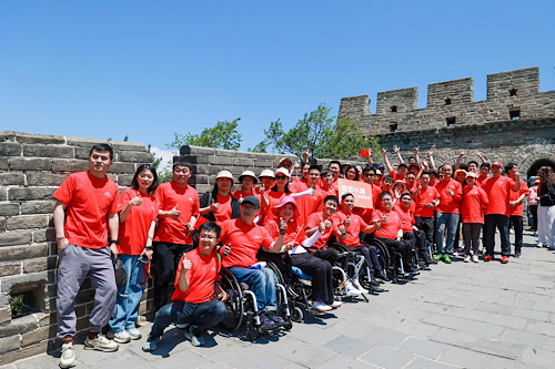 残疾人和助残志愿者们在八达岭长城合影留念