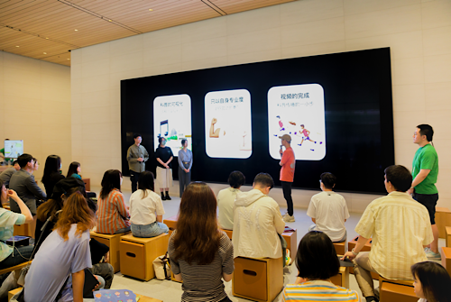 5月27日,四十多位环保社会组织学员在 Apple 三里屯零售店庆祝今年 Today at Apple“为万物,齐创造”系列课程收官,并分享了他们今年的学习收获和心得。