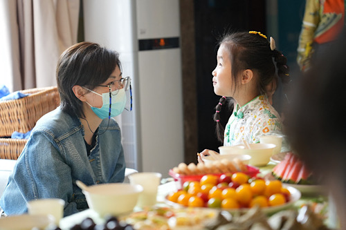 活动现场,万茜回顾了2020年探访春晖关爱之家的情景,观看了以春晖宝宝宝敏为主角的影片《声如夏花》,看到动情处,忍不住落泪;在参观关爱之家的过程中,她面对春晖宝宝们的照片墙,认真询问起他们的近况;在春晖宝宝们的房间里,她盘腿坐下,和孩子们玩起了游戏;下午茶时间,她收到了好几拨孩子们的“投喂”。