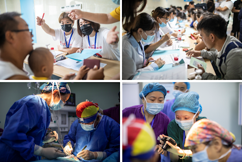 从筛选日的流程指引、患者登记、到手术日的术前陪伴、医学拍照等,志愿者们为唇腭裂患者及其家人提供了细致的服务。参加微笑公益行动的小小志愿者们不仅协助完成了病案登记、医学拍照等多项工作,还通过游戏、玩具等形式,陪伴即将手术的患童度过了漫长的术前等待时光。最终,在志愿者们与专家和医护人员的配合下,48位兔唇宝宝顺利完成了唇腭裂手术治疗。