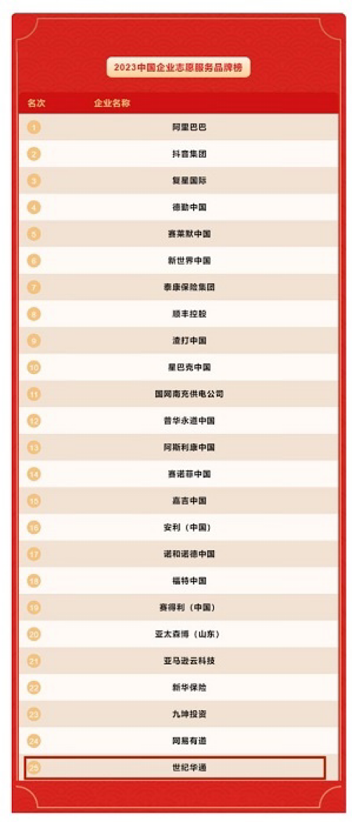 “2023中国企业志愿服务品牌榜”出炉 世纪华通榜上有名