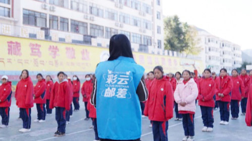彩云邮差受到了校长扎西次仁和全校师生的热情欢迎。“扎西德勒!”直爽的他们为彩云邮差献上了和云朵一样洁白的哈达,表达了对远方朋友的真诚敬意和祝福。