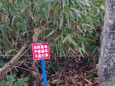 在大熊猫国家公园泥巴山廊道栖息地修复区内,有很多载有“科研基地、严禁破坏、不能打笋”字样的标识牌