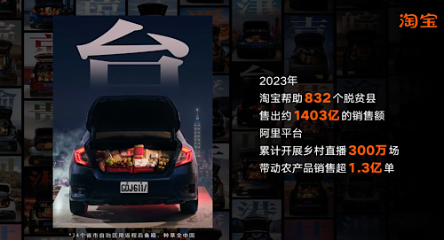 据悉,2024年淘天集团助力乡村振兴还会有一系列活动,比如溯源中国直播、年货节、中国农民丰收节系列活动等等,通过电商力量让乡村振兴焕发更大活力生机。