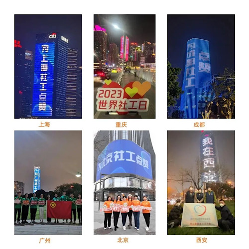 2023世界社工日,点亮六座城市地标楼宇灯光秀合集
