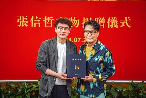 上海博物馆馆长褚晓波感谢了张信哲向上海博物馆捐赠服装文物的义举,“此次他以最诚的心意和最深刻的热爱谱写了一位热爱文博事业的热心观众最为质朴的善意之歌,承载着这种最美好情怀的上海博物馆,亦将为此而不懈努力。”他也表示,目前上博将近四分之一的珍贵文物来自社会各界的捐赠。据悉,目前上博藏品总数超102万件(套),包括33个门类,其中有近9万件来自各界人士捐赠,是上海博物馆藏品主要来源之一。