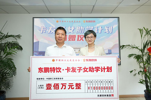 8月23日,“东鹏特饮·卡友子女助学计划”捐赠仪式在京举行。中国职工发展基金会理事长武建光、东鹏饮料集团副总裁蒋薇薇等领导出席仪式。