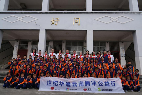 9月12日,由世纪华通捐助的首批再生环保校服在云南省腾冲市新华乡荒田完全小学举行了交付仪式,盛趣游戏党委书记郭臻作为志愿者代表,向新华乡荒田完全小学全体师生捐赠了这批校服,让这场跨越近半年的环保公益爱心之旅画上了圆满句号。荒田完小校长梁昌钰代表校方表示感谢,新华乡中心学校校长周永正及书记周定昌也参与了活动。