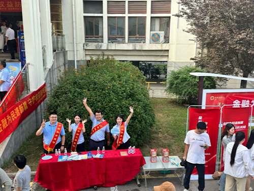 活动中,工作人员设置了金融知识展示区,准备了投壶等互动游戏,现场发放金融知识宣传资料,张贴宣传横幅,通过多种趣味性强、互动性强的方式为大学生群体宣讲金融知识,同时用提问的方式引导大学生加深印象,增强与大学生群体互动。