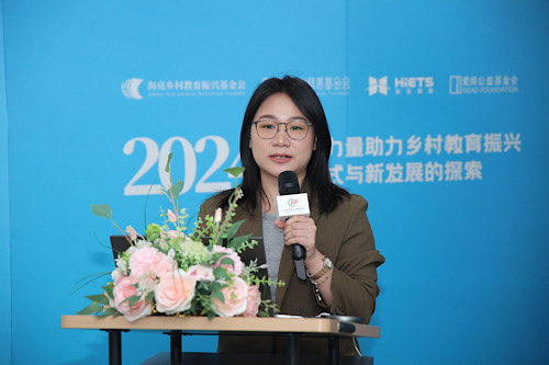 海亮乡村教育振兴基金会理事长刘卓青介绍了其独特的“社会企业”+“公益赋能”模式,依托海亮教育近三十年办学经验和先进理念,系统性为县域学校提供帮扶,打造“政府+企业+基金会”三方联动创新模型助力乡村教育提升,并呼吁乡村教育公益力量进行系统性、深度性整合,避免公益资源浪费,提升公益效率和成果。