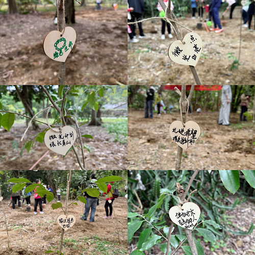 在大家的共同努力下,一株株土沉香树苗稳稳扎根于土壤之中,为这片土地再添一丝生机勃勃的绿意。志愿者们为每株新苗系上专属树牌,将写着环保寄语的树牌化作绿色诺言——此刻埋下的不仅是树木的根系,更是对美好未来的殷殷期许。