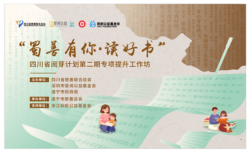 为推进“蜀善有你·读好书”四川省阅芽计划有效落实,及时总结“蜀善有你·读好书”四川省阅芽计划第一期项目运营经验和成效,助力第二期项目点位人员熟练掌握开展早期儿童阅读活动的方法和技能,更好地满足项目点位儿童早期阅读以及成长发展的服务需求,在浙江蚂蚁公益基金会的支持下,结合前期数字木兰乡镇社工培训计划的经验,由四川省慈善联合总会、深圳市爱阅公益基金会、遂宁市民政局主办,遂宁市慈善总会承办的“蜀善有你·读好书”四川省阅芽计划第二期启动仪式暨专项提升工作坊在遂宁市正式启动。