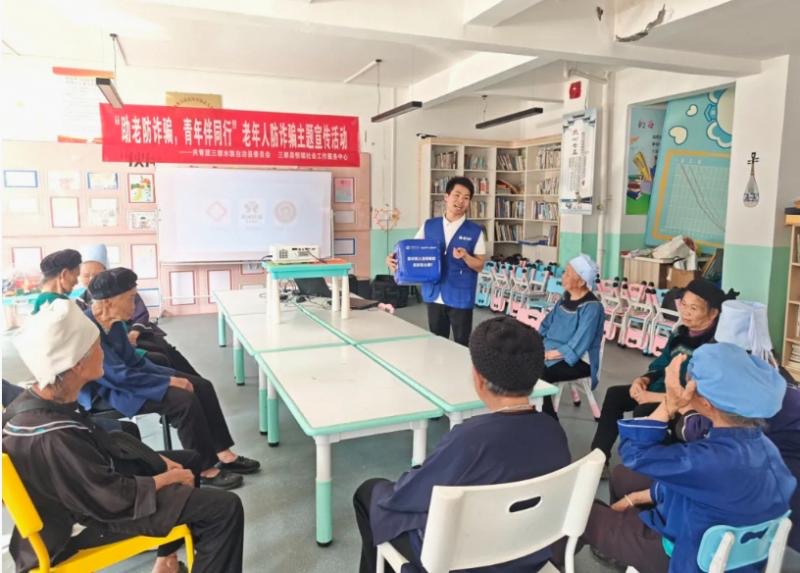 在贵州,青年社会组织三都水族自治县恒瑞社会工作服务中心的工作人员用民族语言向当地老人讲解常规诈骗手法以及防范措施,并反复提醒牢记“四要”“四不要”等防诈骗要点。