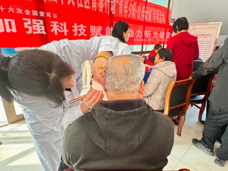 在山东,青州市睦邻公益服务中心的医务志愿者在全国“爱耳日”到来之际,为社区老人带来听力义诊活动,现场使用专业听力检测设备,对老年人的听力状况进行全面评估,并根据检测结果给出相应的建议和指导。