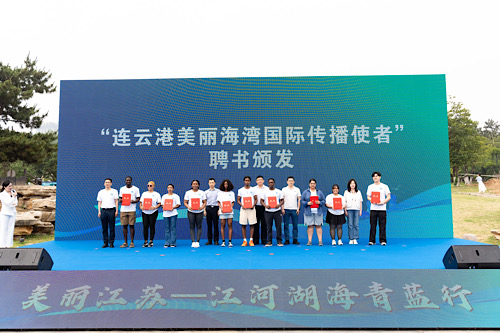 同步启动了江苏美丽海湾“国际传播影响力行动计划”,并为连云港的10位留学生代表,颁发“连云港美丽海湾国际传播使者”聘书;连云港市马站中心小学、连云港市灌南县淮河路实验学校、连云港市许庄小学、连云港市塔山中学、连云港市赣马中心小学、连云港市灌云县城西实验中学、连云港市海头中心小学、连云港市秦东门学校、连云港市建宁小学、连云港市板桥中心小学等10所小学获“中华环境小卫士工作站”荣誉称号。