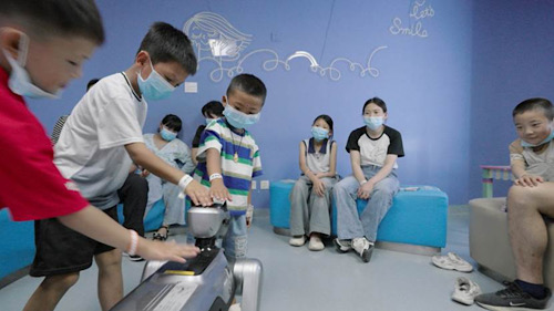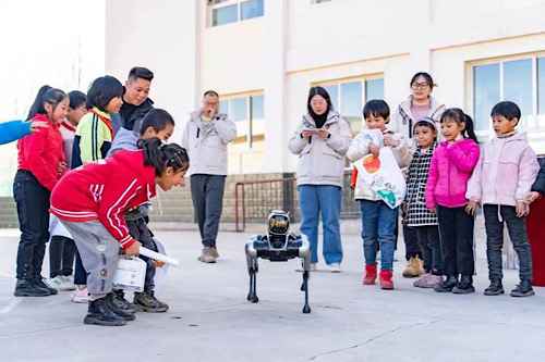 在北京嫣然天使儿童医院的活动区,十几位小朋友围着四足机器狗“小麦”,眼睛闪闪发亮。这些孩子大多来自大凉山等偏远地区,因唇腭裂来到北京接受免费医疗救助,对他们中的许多人来说,首次在生活中和真的机器人一起玩,还能和伙伴一起用积木拼出会动的“扫地机”,这次新奇的体验给他们内心种下了一粒科技的种子。