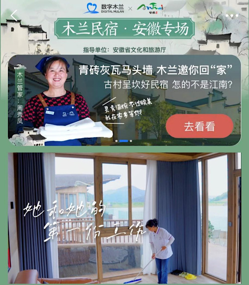 据了解,“木兰民宿”频道安徽专场页面于近期在支付宝App上线,用户可在该页面了解“木兰管家”故事并挑选“皖美民宿”。安徽省文化和旅游厅一级巡视员王靖介绍,安徽高度重视民宿产业发展,率先推出了旅游民宿的集聚区示范,也实现了民宿管家培训与等级认定融合。“未来,我们会更加积极的构建培训、认证就业全链条的培训体系,推动民宿行业高质量发展。‘数字木兰‘和’皖美民宿’的双向奔赴一定能为乡村振兴和擦亮安徽迎客天下品牌继续添砖加瓦。”