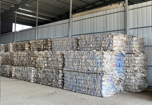 塑料餐盒在回收站点打包后准备送往再生工厂“重生”(摄影:培坤)