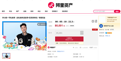 李小鹏爱心私教课在阿里资产竞价成交 成交价款将捐赠至美丽中国支教项目