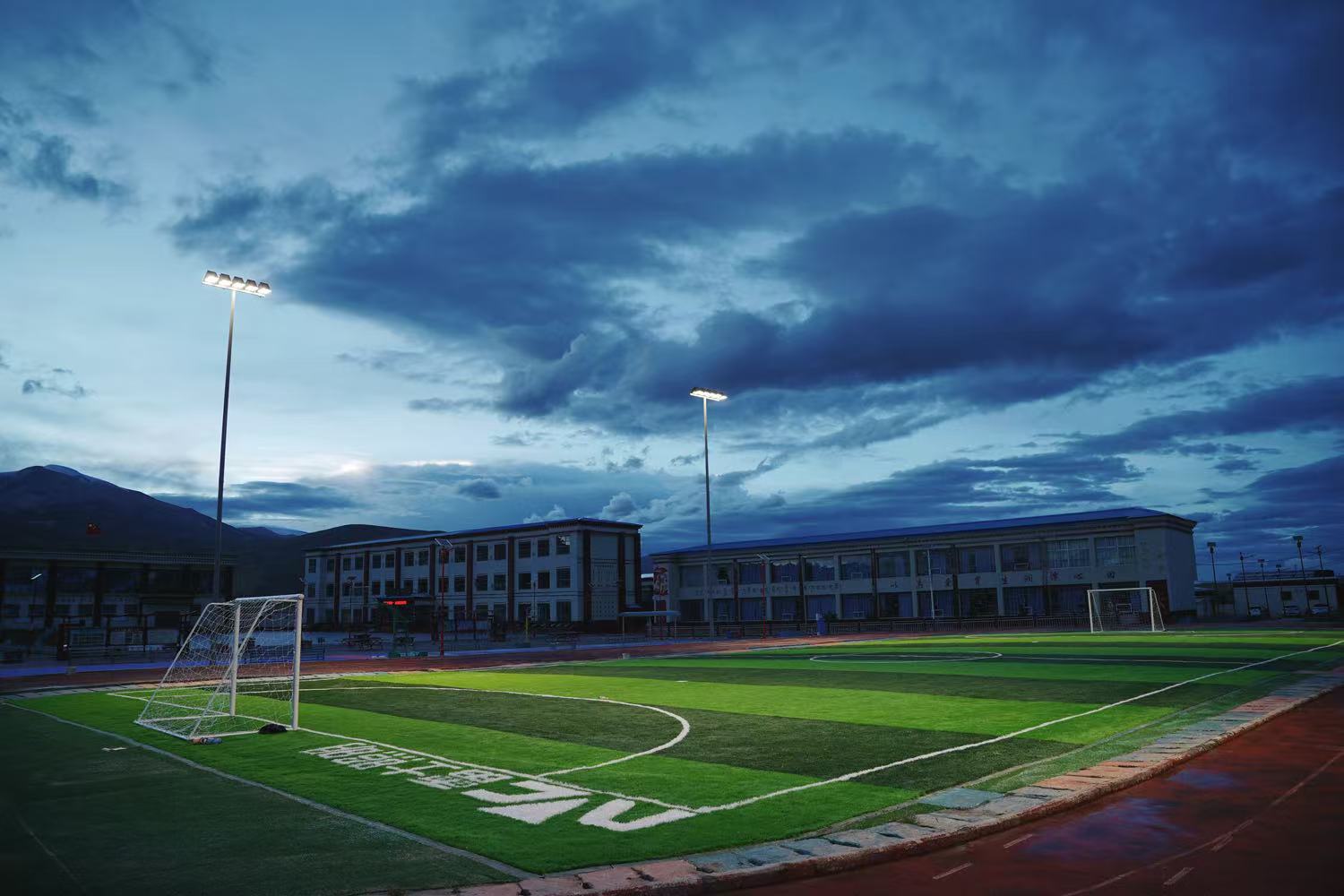 随着草坪逐步铺设,绿色在校园里延展开来,与远处的雪山相映成趣。孩子们排队等着启动仪式,有人忍不住在灯下跑了好几圈。操场一侧的围栏外,几位家长和村民静静看着,有人拍照,有人只是微笑。“晚上也能踢球了!妈妈说让我一定要认真谢谢叔叔阿姨。”五年级的旦增久美边说边兴奋地跳着。