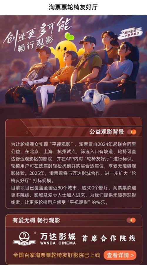 《无障碍环境建设法》施行两周年 万达影城携手淘票票助推“轮椅友好厅”惠及全国近80城
