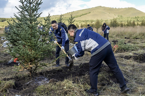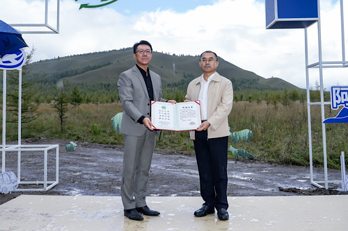 在启动仪式现场,中国绿化基金会向米其林颁发捐赠证书。米其林、中国绿化基金会及合作伙伴代表共同种下新一批树苗,以实际行动凝聚绿色力量,让生态修复成果在阿尔山生动呈现。